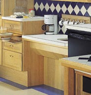 Is your kitchen handicap accessible? Your accessible kitchen home modifications design should include ample floor space for mobility, ADA handicap accessible appliance access clearances, accessible cabinet doors, drawers and shelves; and a functional “work triangle”. The work triangle refers to the comfortable work space area created between the stove, the refrigerator, and the sink. The sides of the triangle should be greater than four feet and under nine feet, with the outer limits of the triangle at a maximum of 26 feet. http://atlantahomemods.com/ADAHandicapAccessibleKitchenDesigninAtlanta.aspx